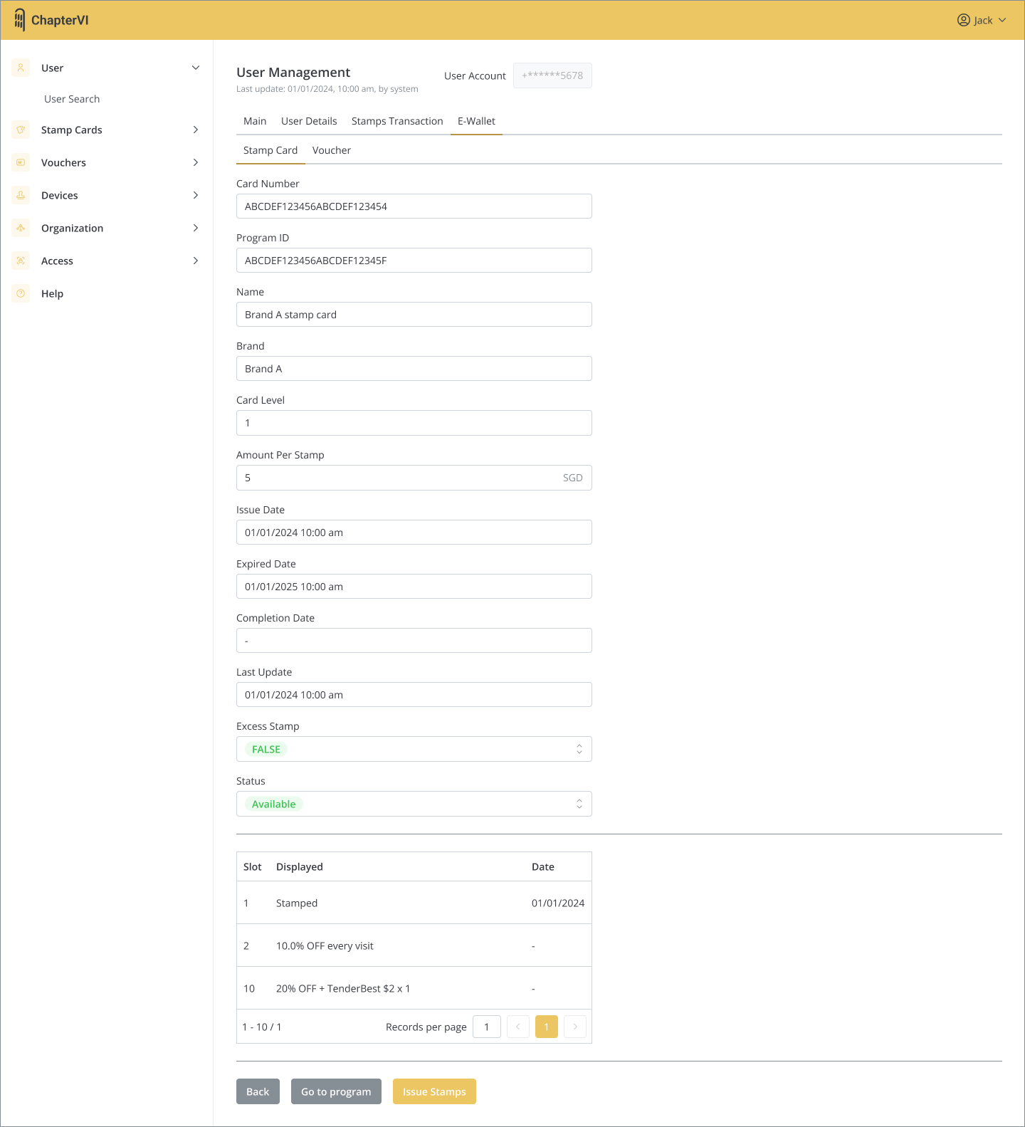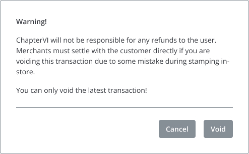 Voiding last transactions in user’s wallet will void all the vouchers issued AND the issued stamps will be reverted back.