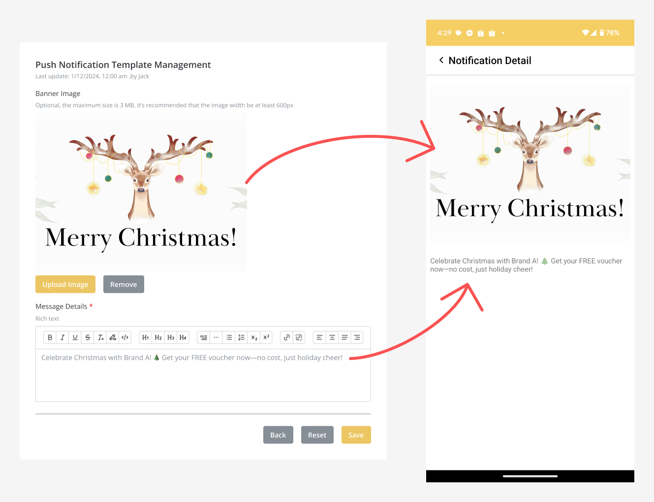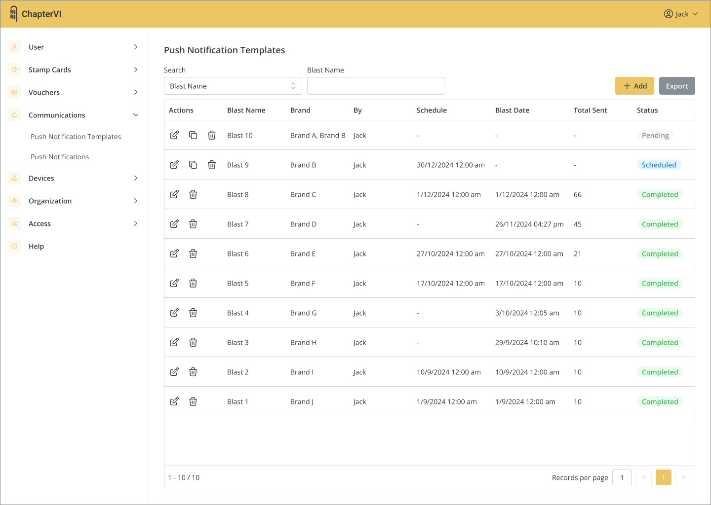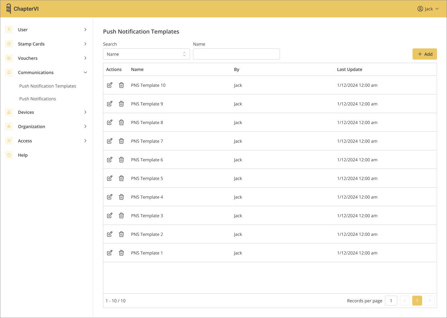 - Find “Communications”→”Push Notification Templates” in the menu.