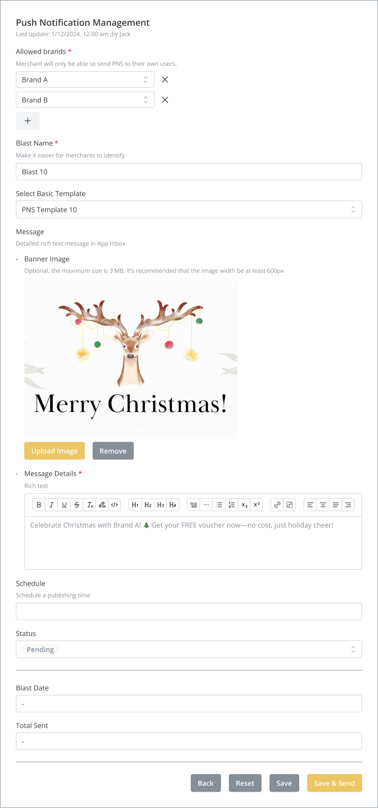 - You can click “Schedule”→”Save” to schedule publishing, or press “Save & Send” to publish immediately.