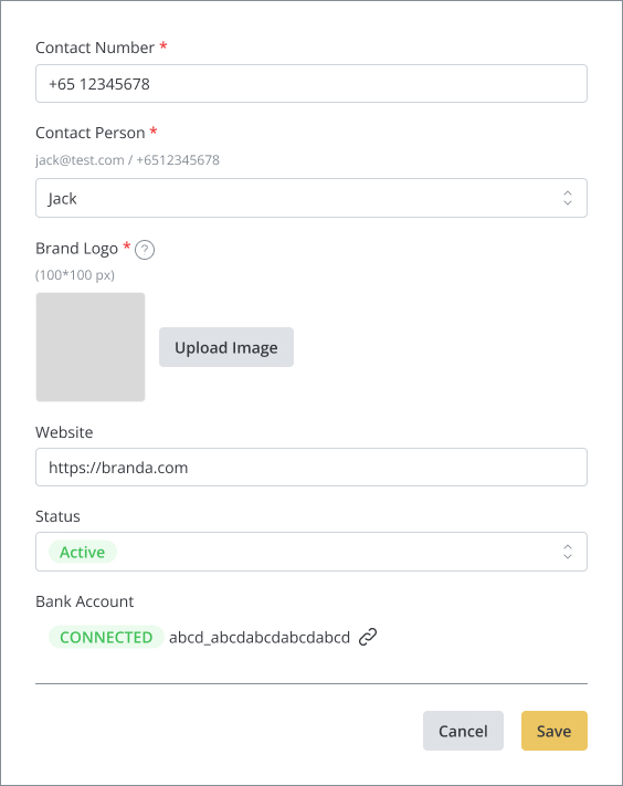 6. Close the window and you should be back at the Brands page and see that your bank account is now setup successfully!